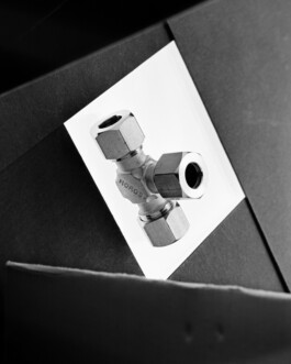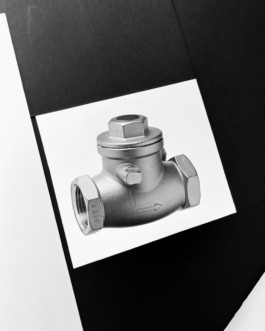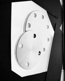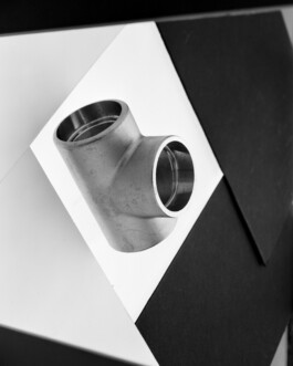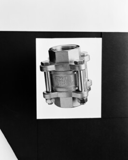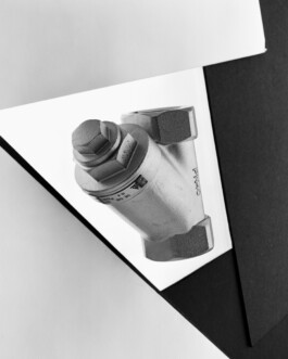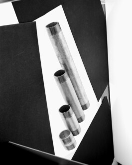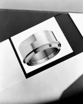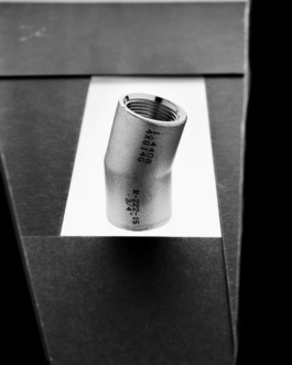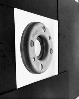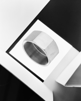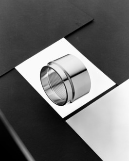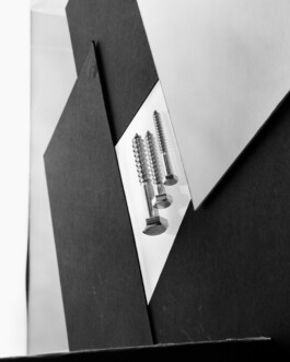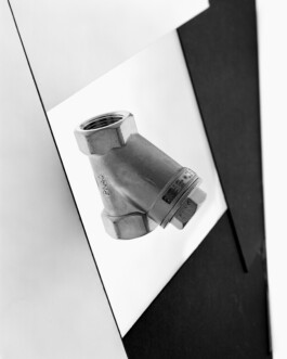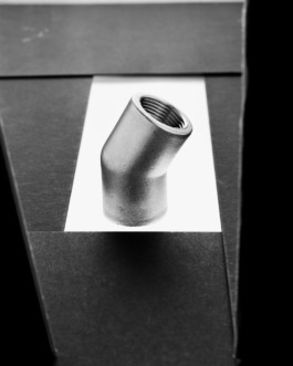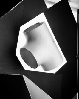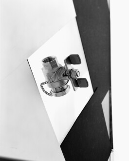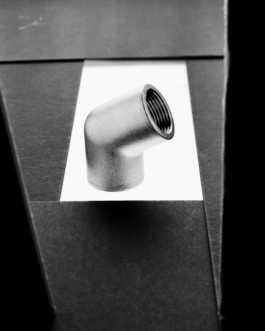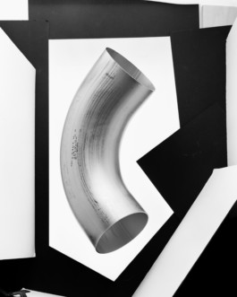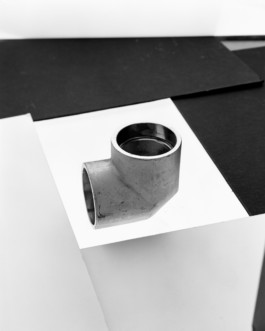 Organs of A Divided Labour – Pipes and Fittings is a conceptual exploration of labor, production, and commercial imagery. Ayer meticulously replicates pack shots—a type of studio photograph used to showcase products for sale—from a metal tube retailer's catalog. By ordering 101 pieces from this catalog and using a large-format camera to recreate the original shots, Ayer mirrors the aesthetic precision of commercial photography.
